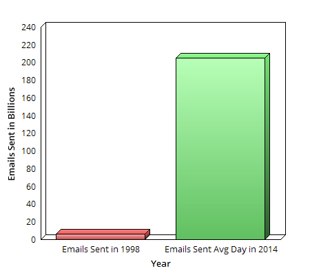 In 1998, Internet users sent over 6 billion email messages. TOTAL. Today, the human race sends over 205 billion emails PER DAY. It’s the most-used electronic medium for communication, outpacing every social media outlet by miles.
